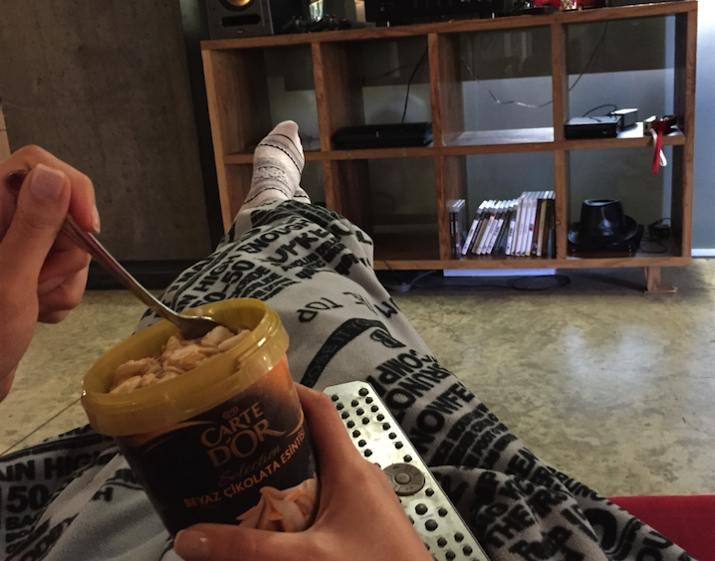 7. Evde tek başına keyif yaparken bir kutuyu silip süpürmek sana göre hiç keyifli bir şey değil